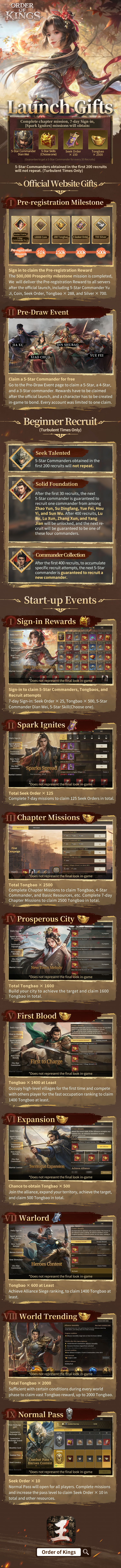Prepare your grain first for every fight! We've prepared generous supplies for all lords—complete a series of events and tasks to claim them. Log in during the first seven days to get a 5-star Commander Dian Wei, 5-star Skill (Choose One)×1, Seeker Order×150, Tongbao×2500, and more! Please see below for a summary of all events and Information.